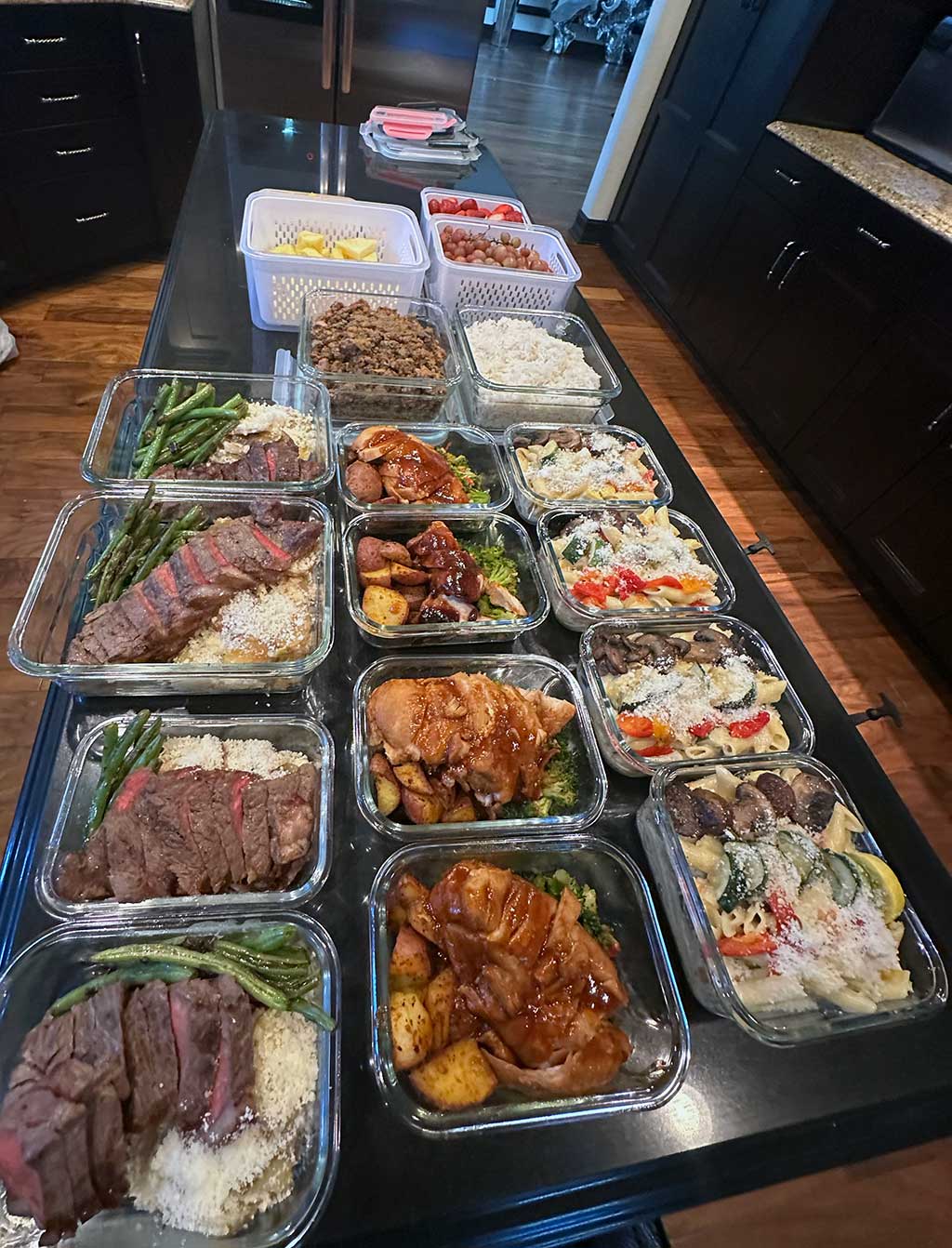 Personal chef cooks everything fresh in your kitchen & stores in containers.